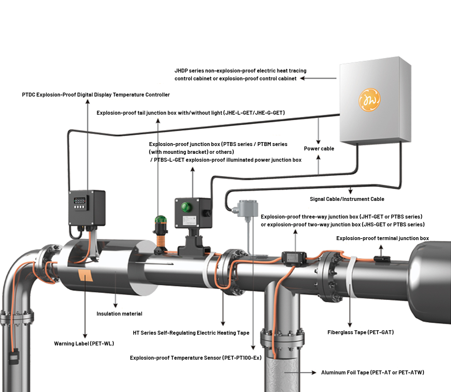 HTU⁺ ultra-high temperature self-regulating electric heat tracing tape can be used for applications such as freeze protection and process temperature maintenance for pipelines and storage tanks under ultra-high continuous operating temperatures (up to 210°C). At the same time, this product can withstand a maximum continuous exposure temperature of up to 260°C, including intermittent or continuous long-term high-temperature steam purging environments, and it can also be installed and used in ultra-low temperature environments of -60°C. In practical terms, the product’s maximum maintenance temperature (210°C) and maximum continuous exposure temperature (260°C) provide high output power in high-temperature environments. It can maintain production conditions for many organic media in the petrochemical and coal chemical industries, protect high-temperature media from freezing in extremely low ambient temperatures, and also perform well in oil.